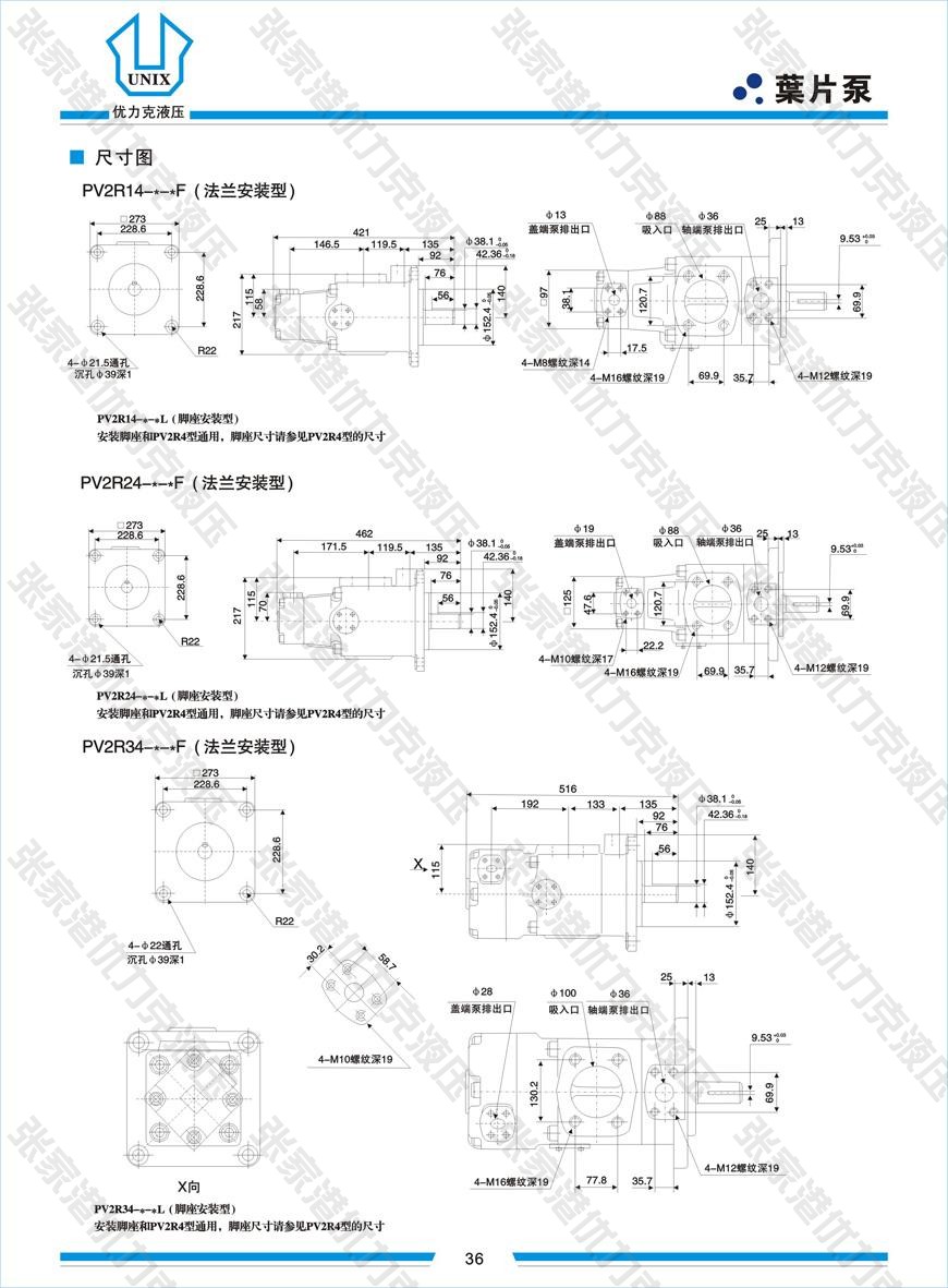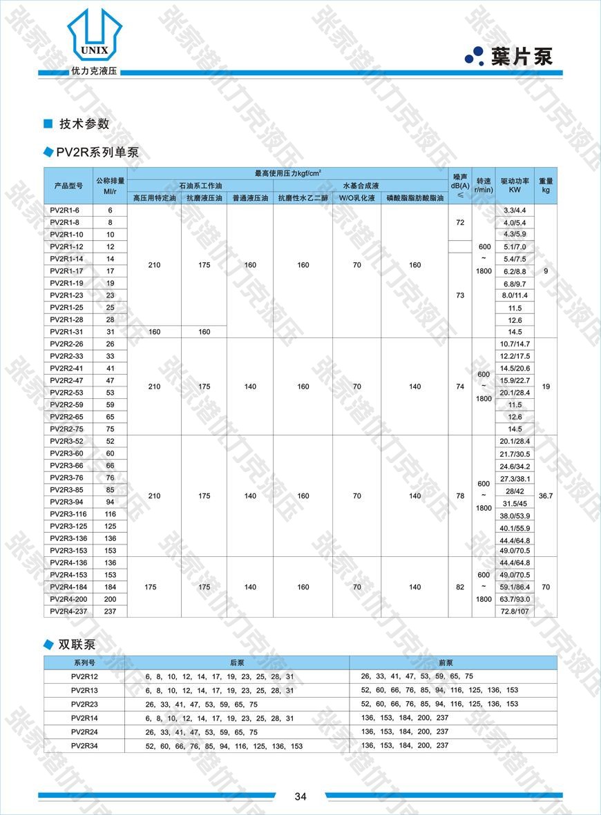 該系列的雙聯(lián)泵是由同一軸驅動的兩個PV2R系列單泵并聯(lián)組裝在同一殼體內而成,具有一個共用進油口和兩個可以輸向兩個獨立回路的出油口。按照兩個泵的系列組合,可獲得多種流量。