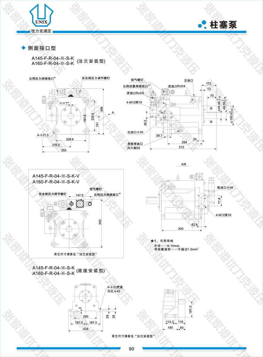 用于液壓開式回路的斜盤結(jié)構(gòu)軸向柱塞泵流量正比于驅(qū)動轉(zhuǎn)速和排量,并能通過調(diào)節(jié)斜盤傾角實現(xiàn)無級變量?!?1”型手動調(diào)節(jié),“04”型改變輸入電流調(diào)節(jié),有單獨的注油口和兩個泄油口供選擇,良好的吸入性能,低噪音,長壽命,節(jié)能特性明顯,反應(yīng)速度快,精度高。